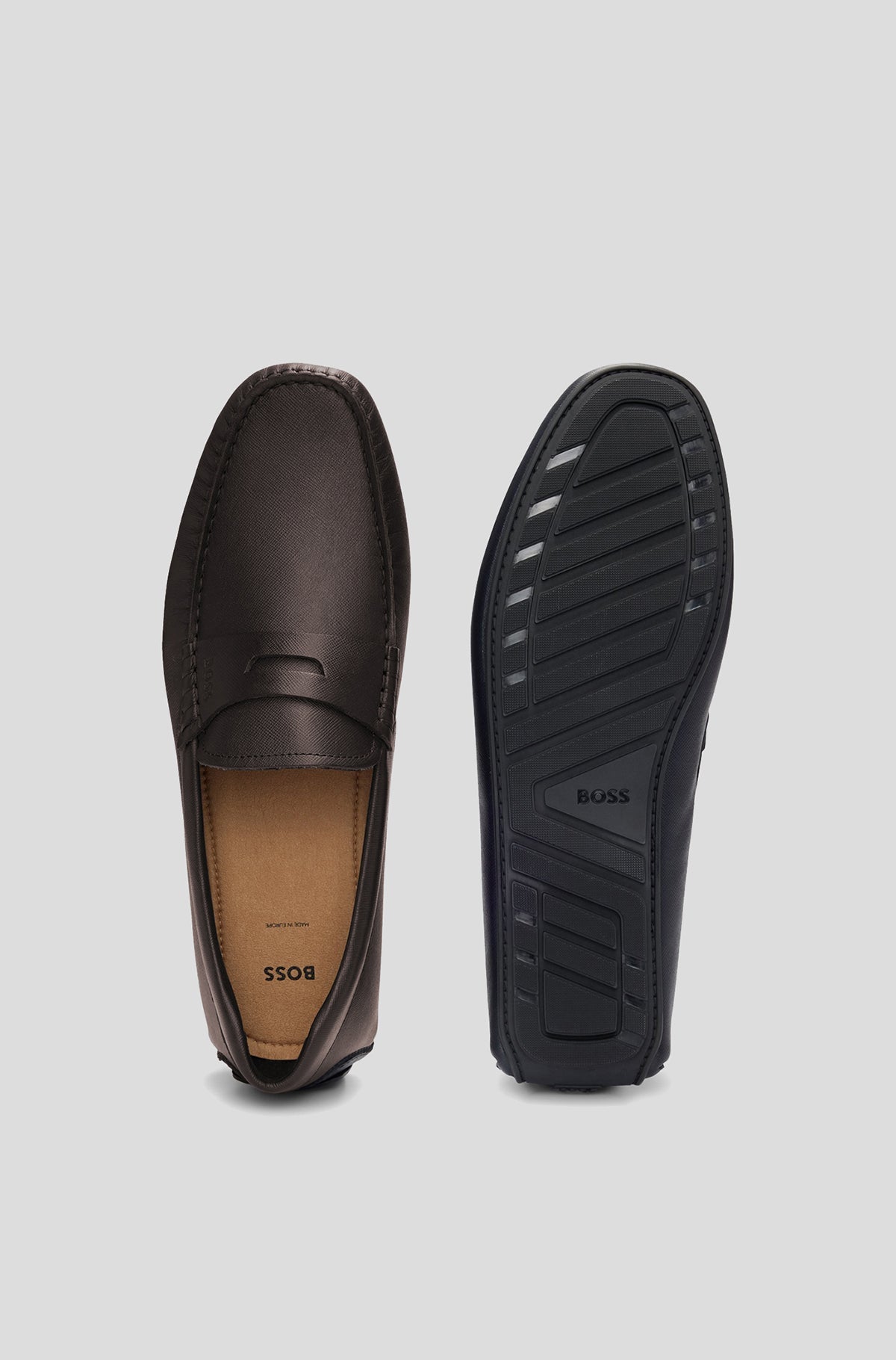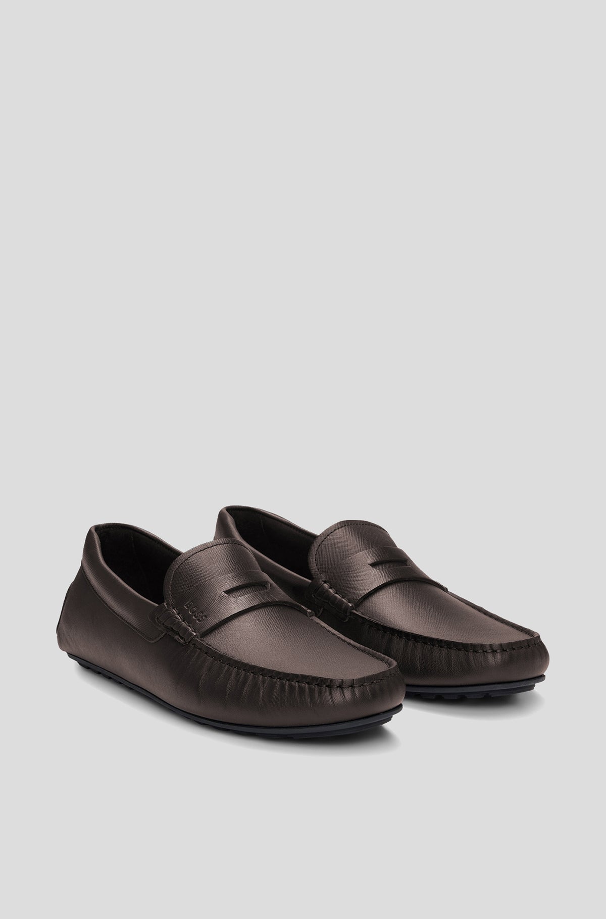 HUGO BOSS Embossed Leather Slip-On Moccasins with Logo Detail