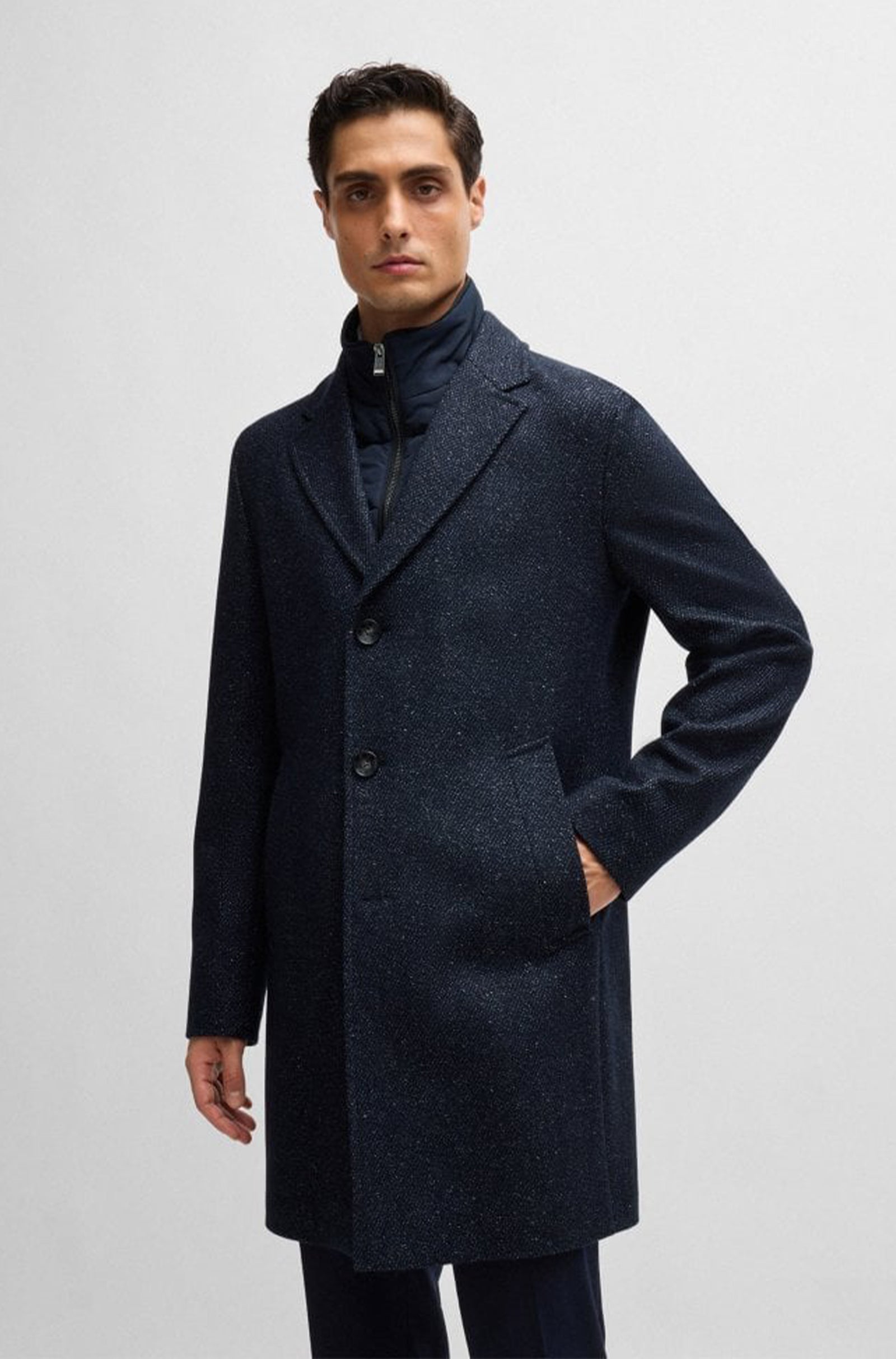 HUGO BOSS Slim Fit Coat with Detachable Zip-up Inner