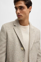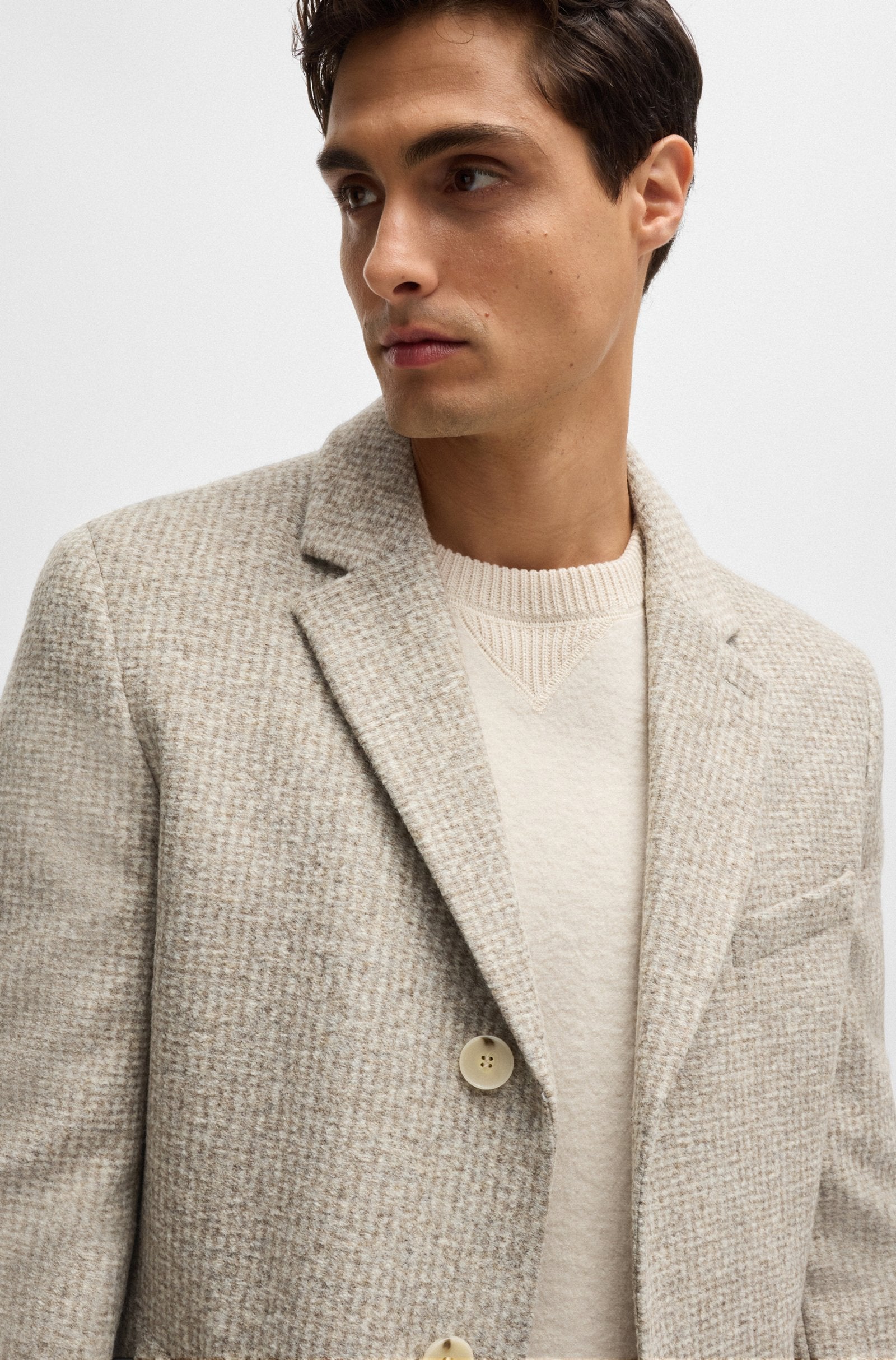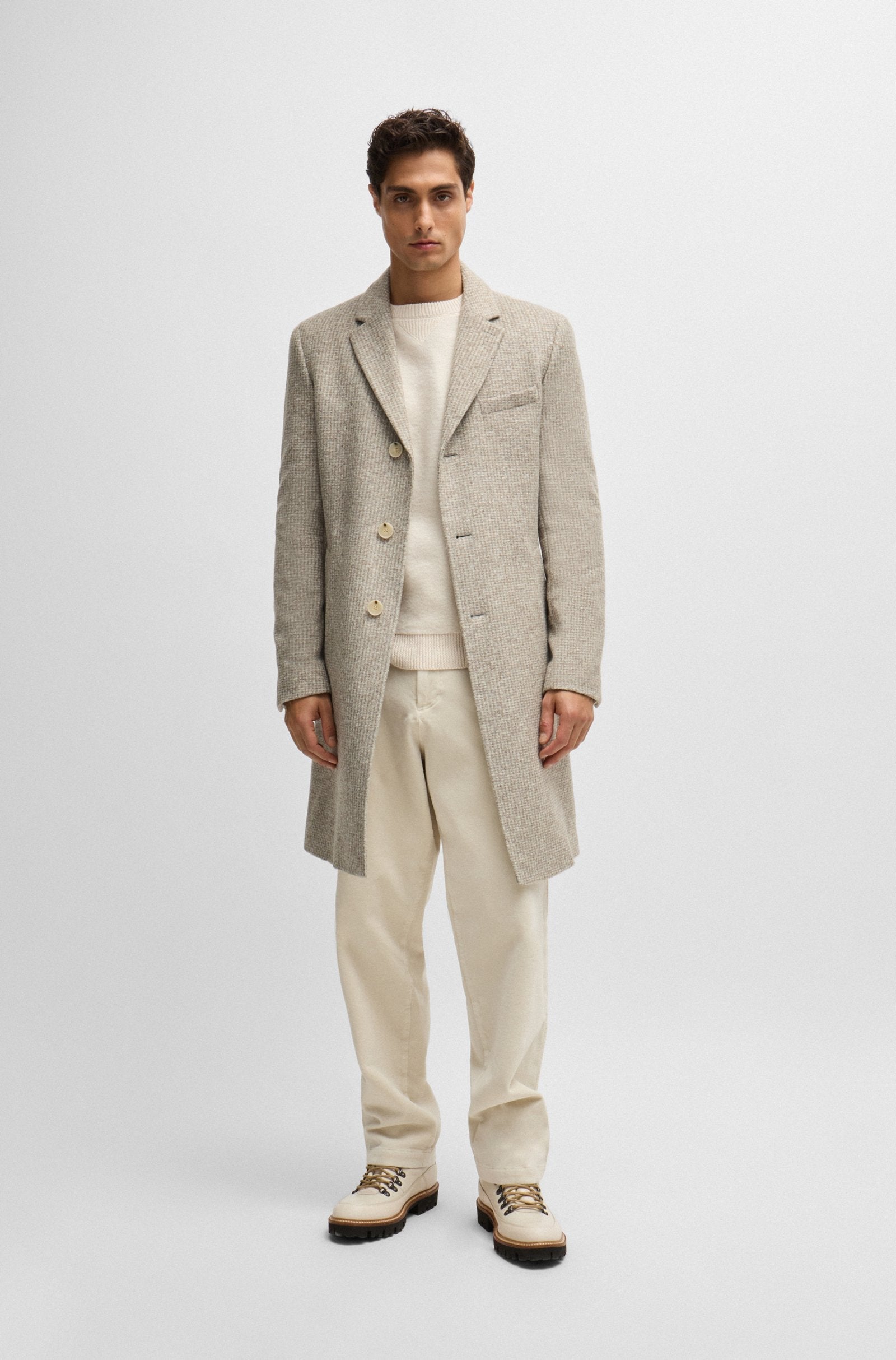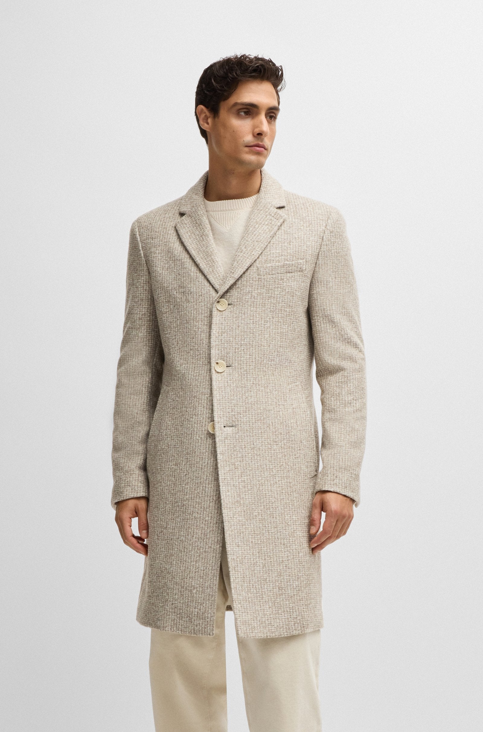 HUGO BOSS Slim Fit Patterned Wool Jersey Long Coat