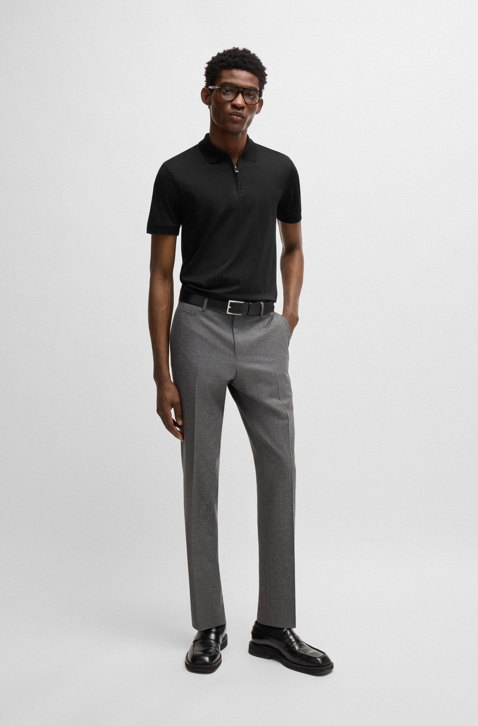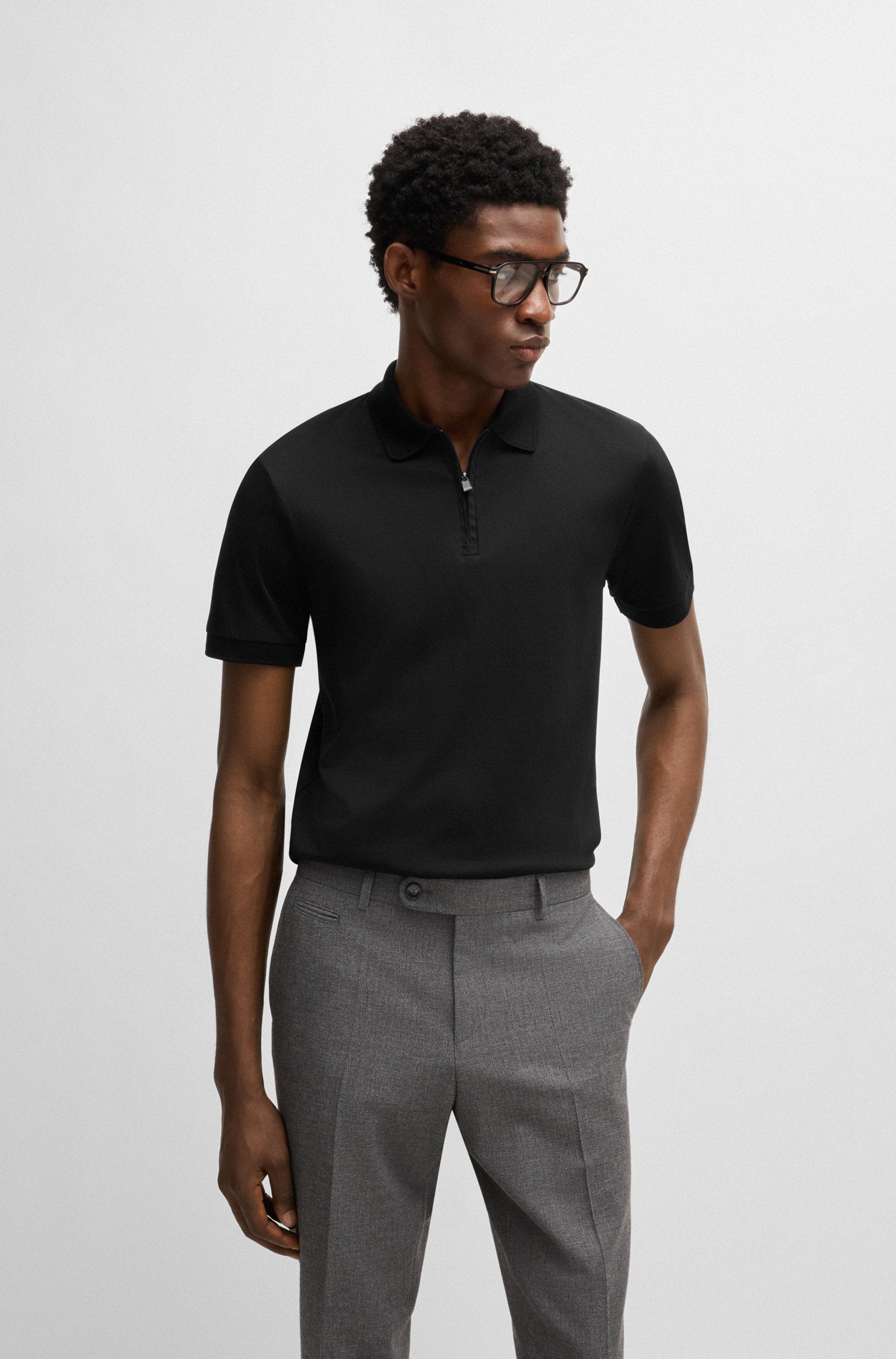 A contemporary polo shirt by BOSS. Crafted in super-soft cotton with a mercerised finish, this polo shirt is cut to a defined fit and topped with a zipped placket. A logo flag trims the side seam.