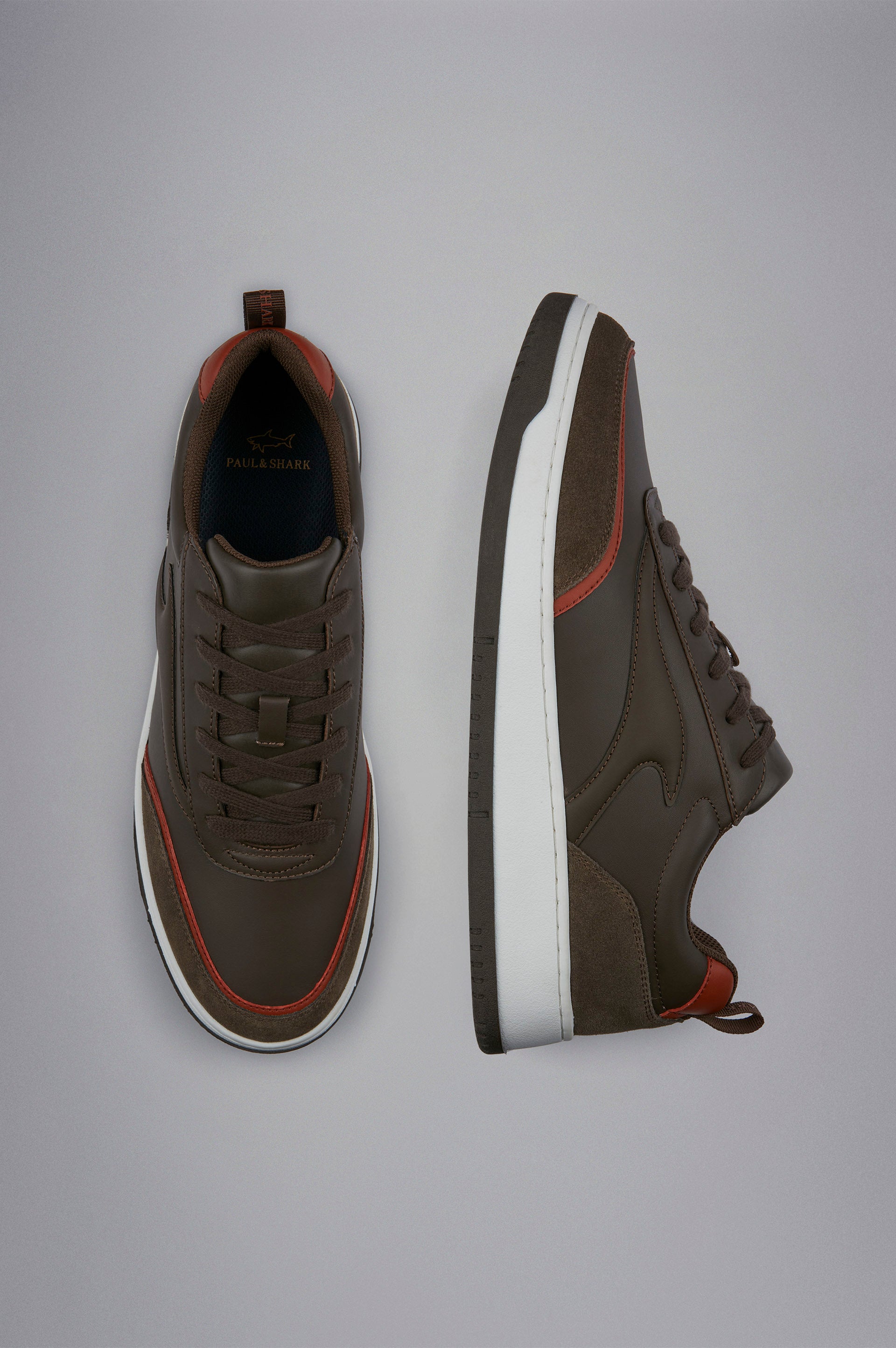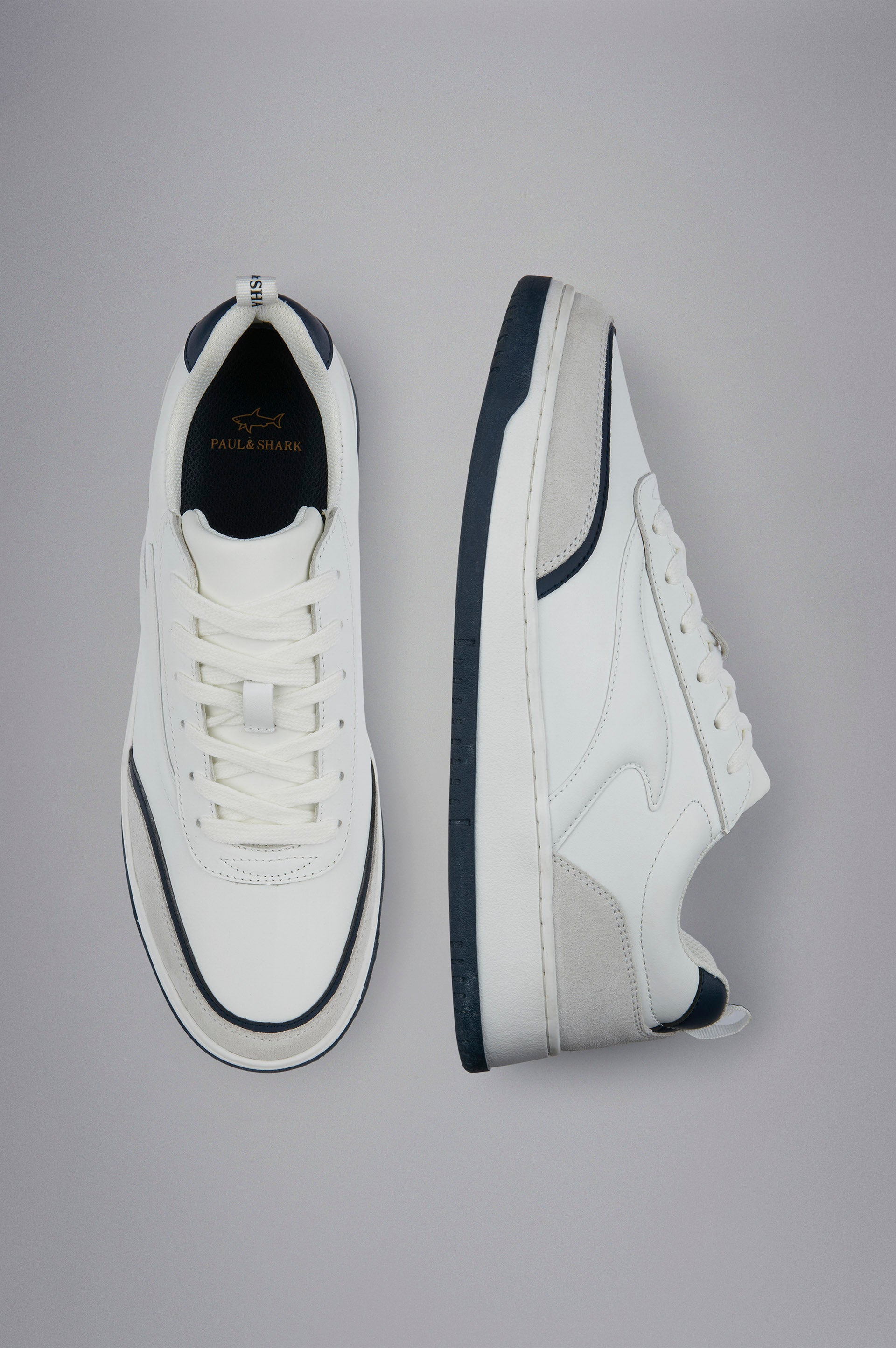 A robust yet lightweight design that moulds to your every stride for optimal support. This sneaker is crafted from a combination of leather and suede, striking the perfect balance between resistant and refined. Distinctive inlays on the sides pay homage to Paul & Shark’s iconic fin symbol, whilst the padded tongue and logo grosgrain pull tab have been carefully designed to ensure maximum comfort. Presented inside a branded dust bag.