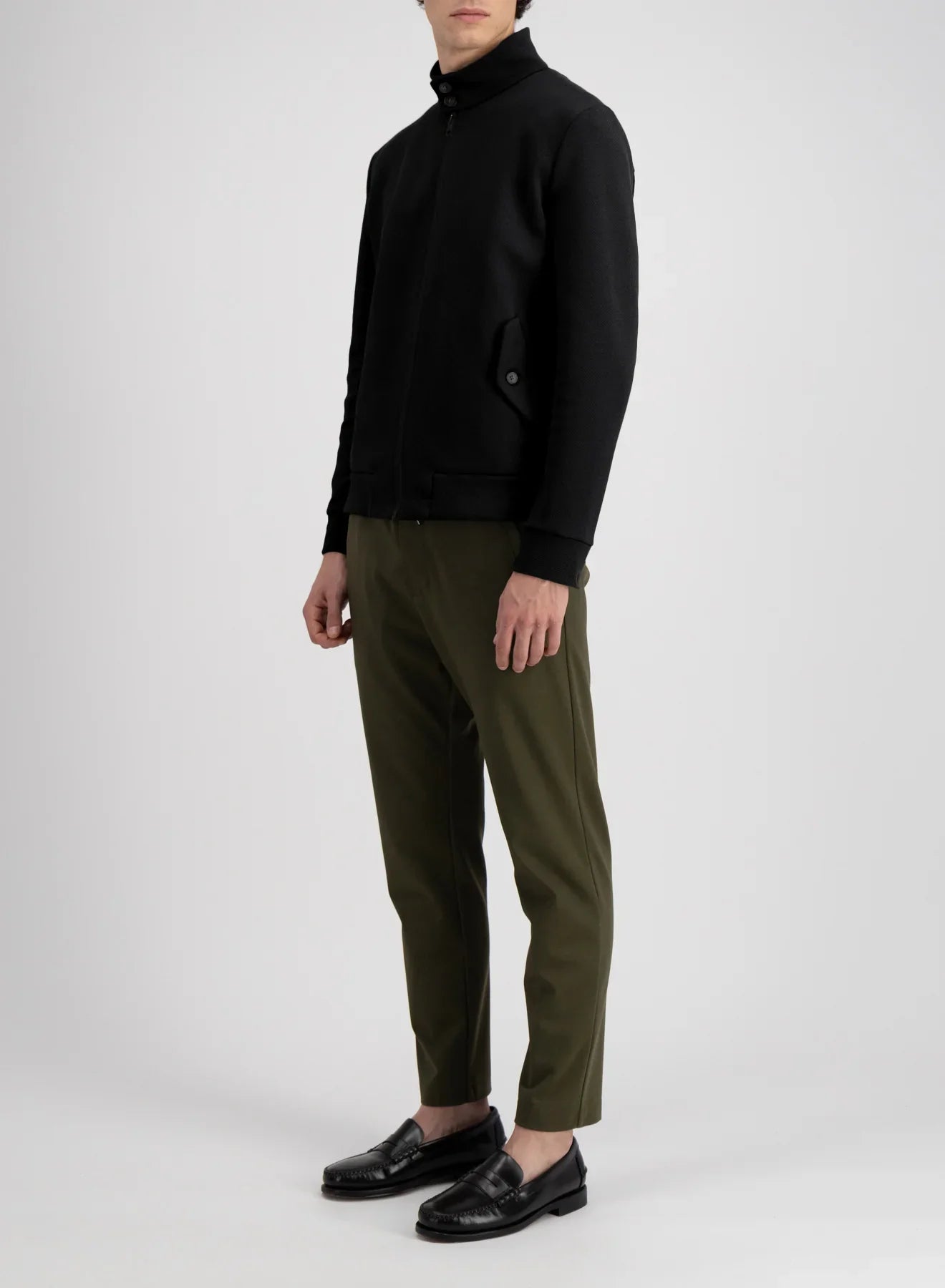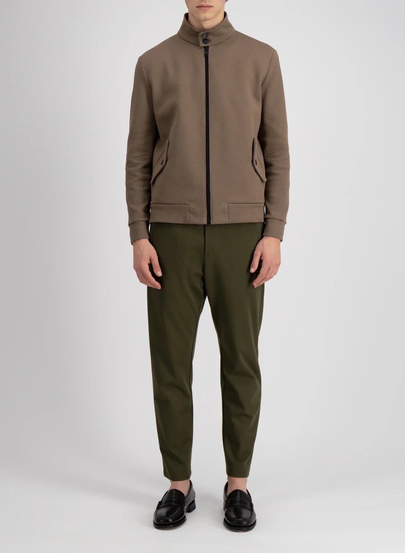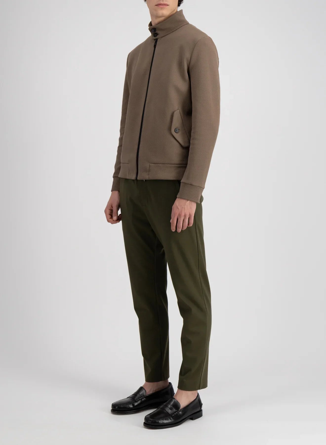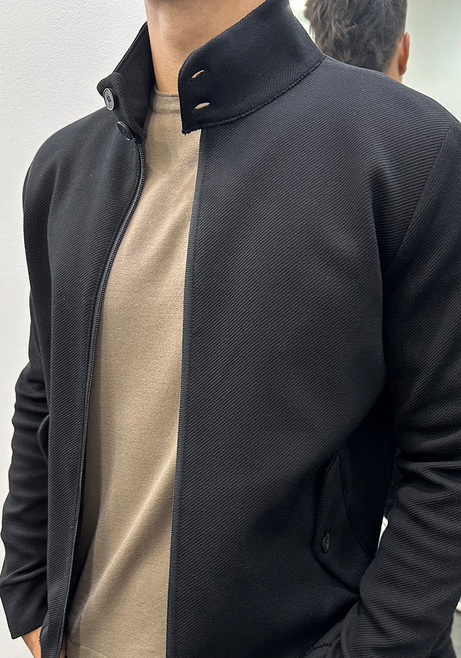 Harrington jacket, unlined in knitted Loro Piana Cavalry twill cotton.