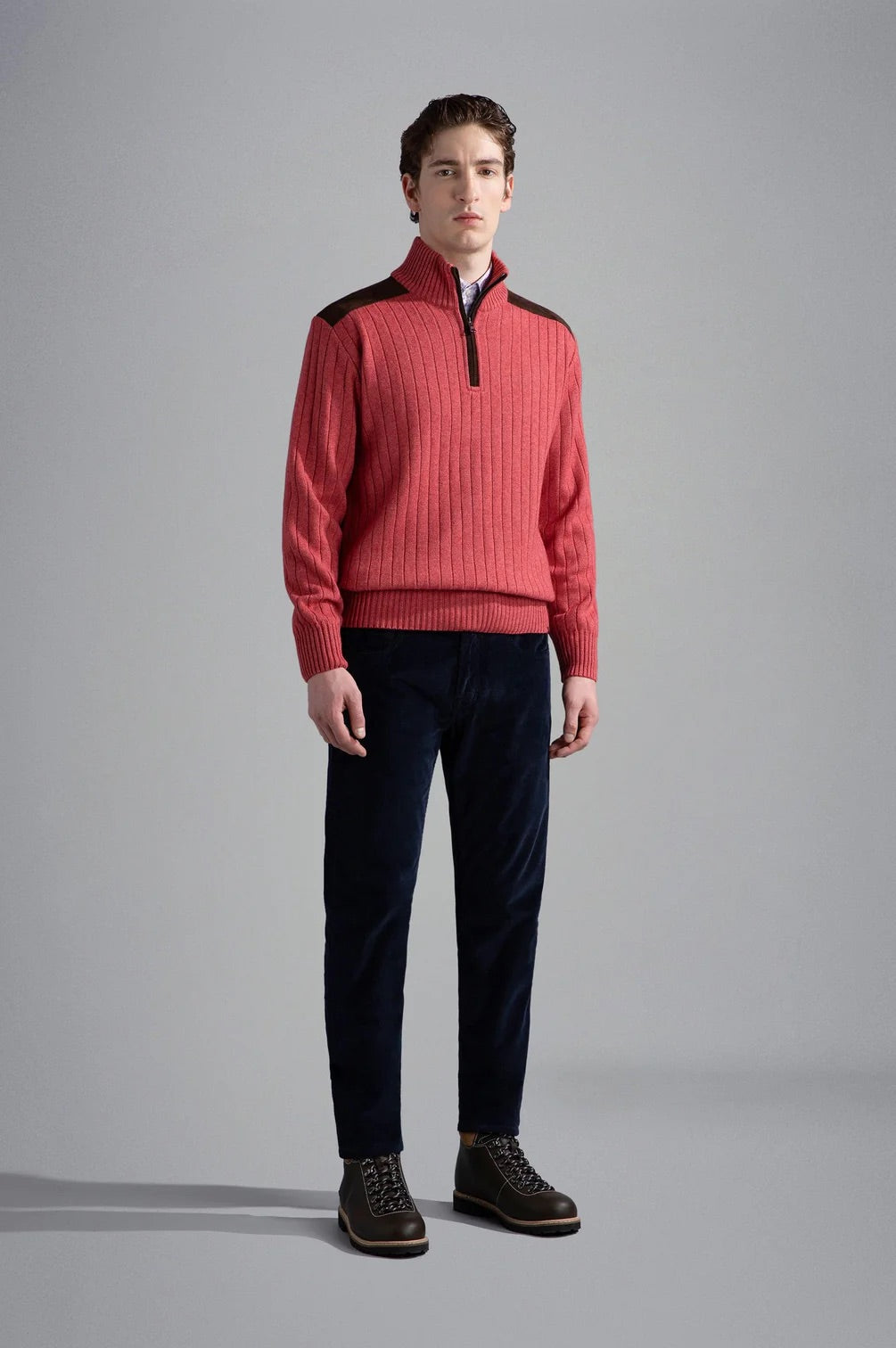 Paul&Shark Wool Cashmere 1/4 Zip Knit with Genuine Leather Details