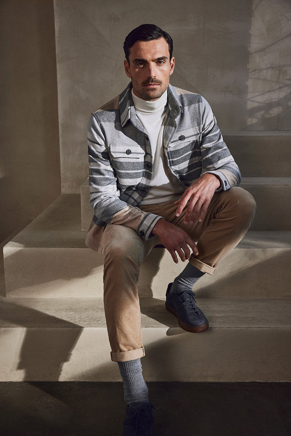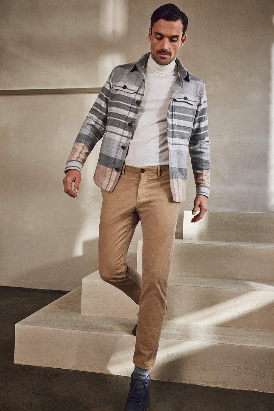 This extravagant velvet “Made in Italy” fuses tradition and craftsmanship with excellent wear properties and modern casual aesthetics. The yarn pile is heavily clipped to achieve its eye-catching fabric look. Weavers calls this “taglio francese” thereby referring to the tradition-rich origins of this clipping techno- logy. This fabric expertly bridges the gap between exquisite and sporty looks. The distinct character, soft touch and high stretch performance bring about an exclusive wear experience paired with up-to-date free- dom of movement and a one-of-a-kind look.