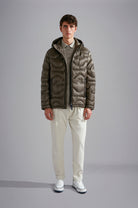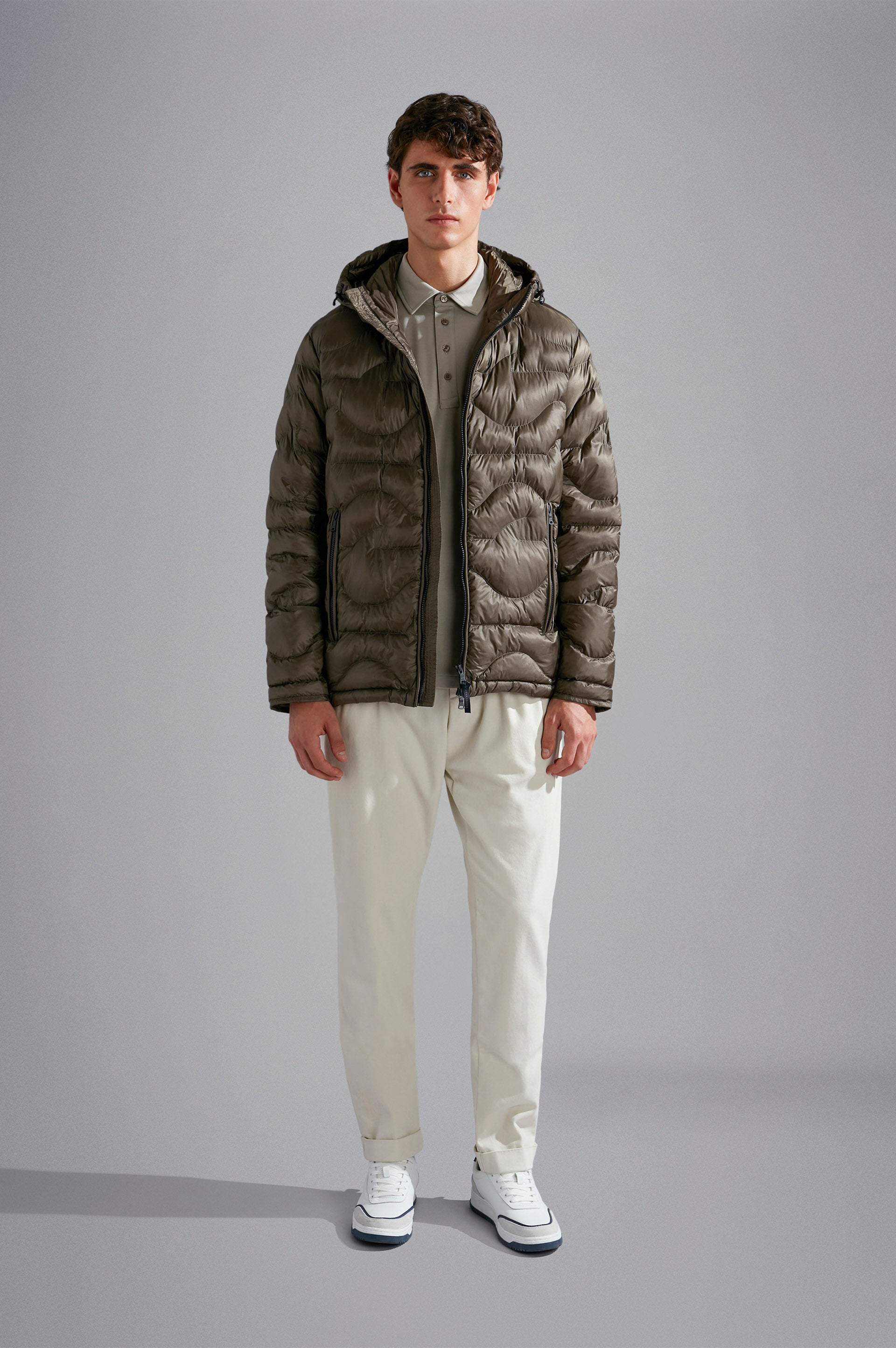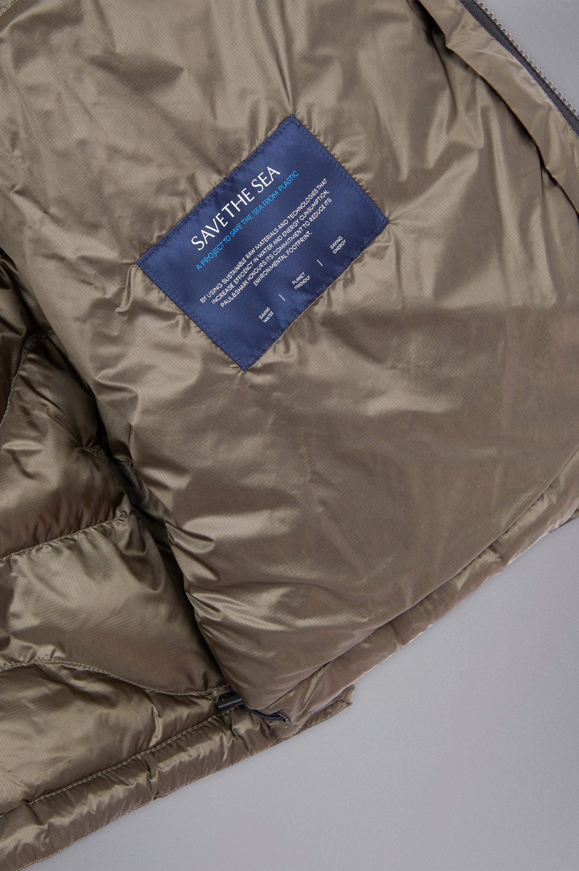 The stylistic codes of the Monogram collection meet the low-impact processes of the Save the Sea project. This puffer jacket is filled with ThermoPlume®: our lightweight vegan alternative to down made from 100% recycled materials, delivering unmatched elasticity, softness and compressibility. Combining the shape of a shark’s fin with the rolling movement of the waves, this garment's distinctive quilting pays homage to the very essence of Paul & Shark. Complete with a drawstring hood and two-way zip closure for a versatile, customisable fit.