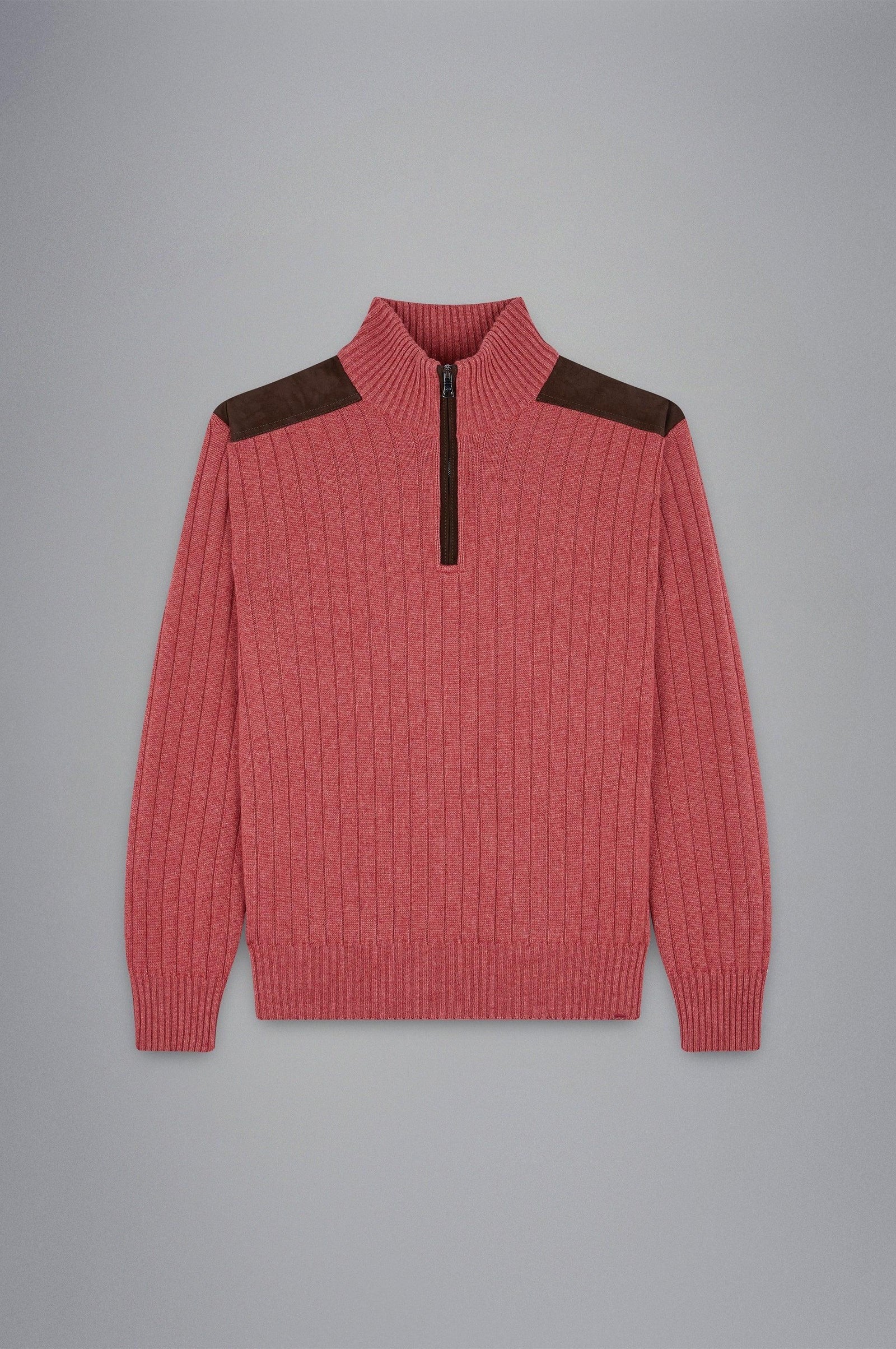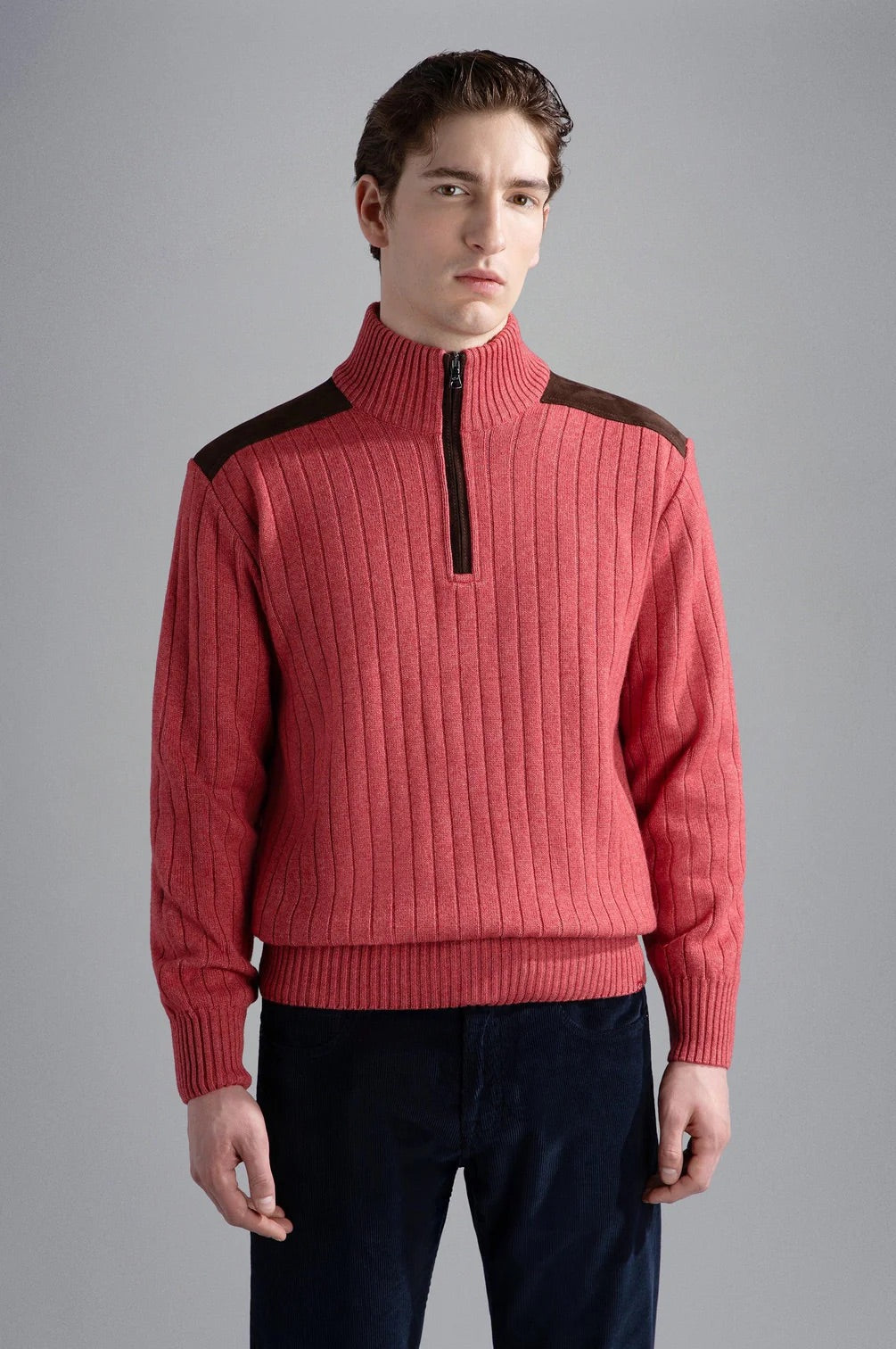 Paul&Shark Wool Cashmere 1/4 Zip Knit with Genuine Leather Details