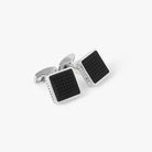 Discover the Diamond Giza Ice Cufflinks in Palladium & Black Enamel. These elegant cufflinks, named Giza Ice, feature a palladium-plated base metal in a rounded square design. The interior showcases our signature 3D diamond Giza texture, overlaid with a translucent layer of enamel in black, enhancing the depth and intricacy of the texturing. The edges are meticulously engraved with a grid pattern inspired by Tuscan columns, adding a touch of architectural elegance.