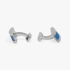 Our timeless D-shaped frame features an inlaid panel of blue Alutex, with our signature diamond pattern engraved around the face of each cufflink. Designed to be fun, fashionable and functional, these cufflinks are perfect for those who sport a minimalistic style. Set in palladium plated base metal. The face of each cufflink measures 15mm length x 12mm height x 5mm width.